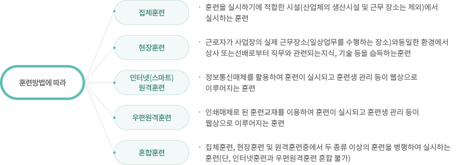 • 유급휴가 훈련 : 사업주가 재직 근로자를 대상으로 일정기간 이상 유급휴가를 주고 훈련을 실시할 때 지원되는 임금의 일부를 지원하는 훈련